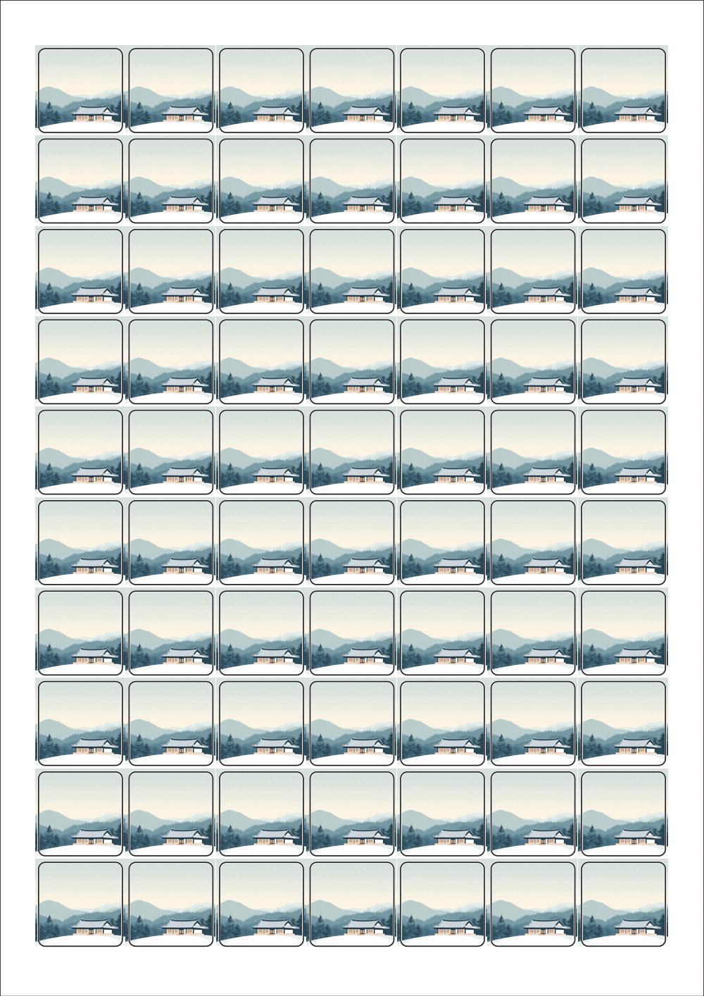 디자인된 A4 라벨지 출력용 라벨스티커, 규격코드: 270, 디자인코드: DA1576(고요한 마음과 다정한 인사), 25 x 25 (mm)