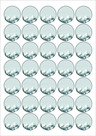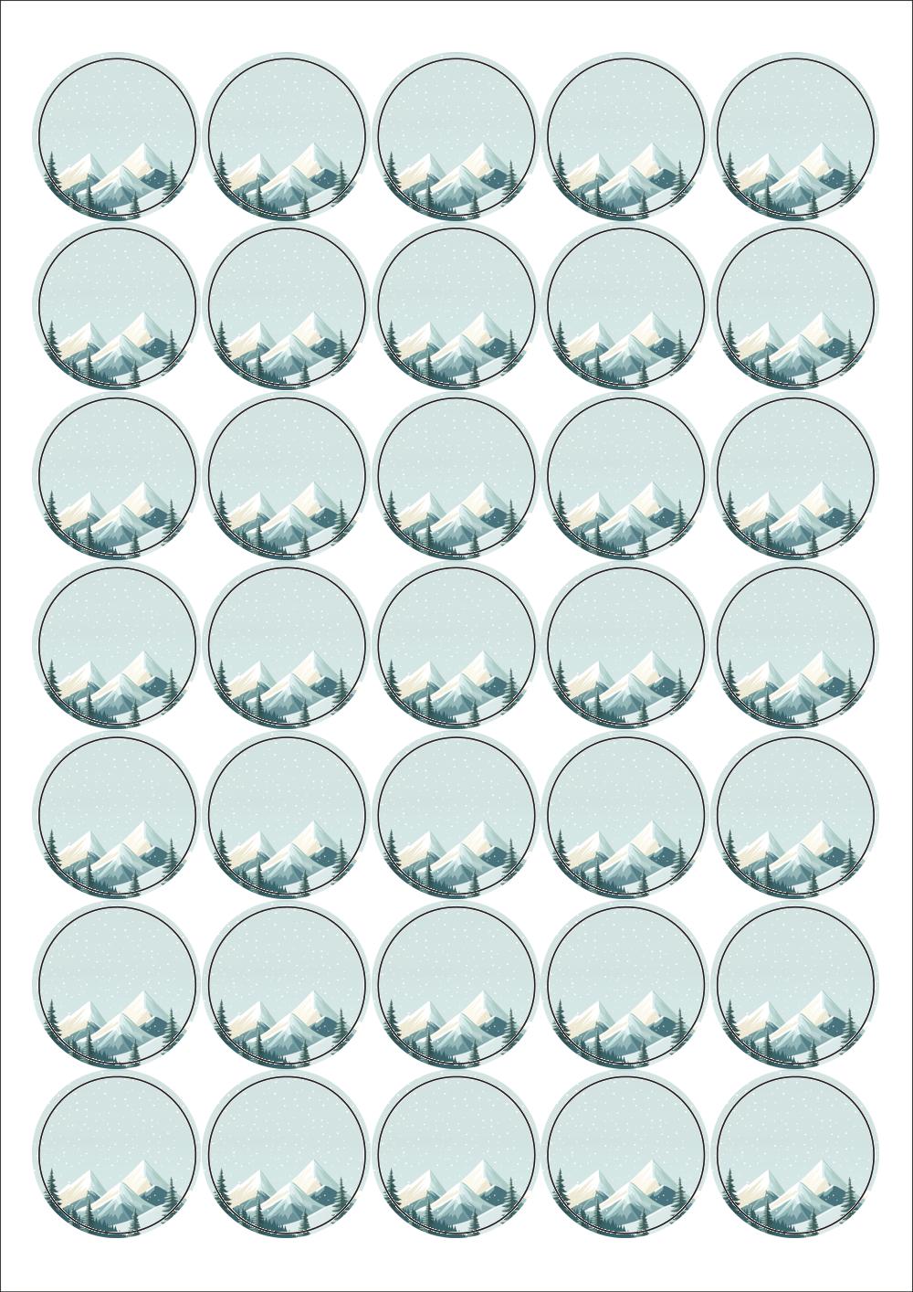 디자인된 A4 라벨지 출력용 라벨스티커, 규격코드: 535, 디자인코드: DA1583(겨울 메세지), Φ36 (mm) 원형