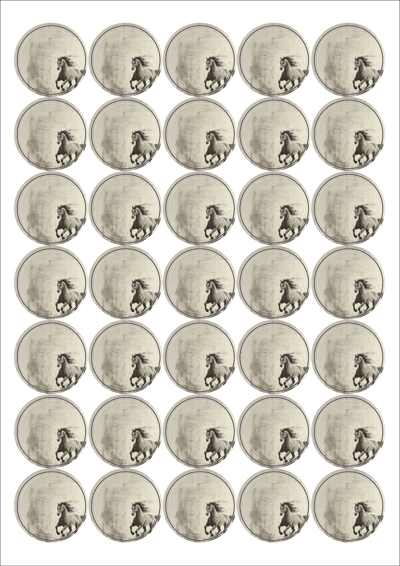 디자인된 A4 라벨지 출력용 라벨스티커, 규격코드: 535, 디자인코드: DA1584(말띠해의 메세지), Φ36 (mm) 원형