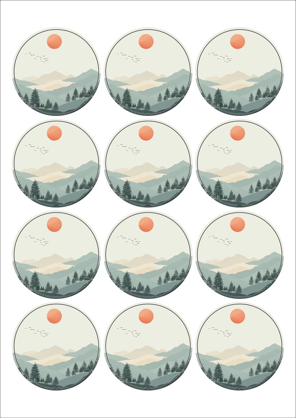 디자인된 A4 라벨지 출력용 라벨스티커, 규격코드: 634, 디자인코드: DA1574(희망을 품은 붉은 해처럼), Φ60 (mm) 원형