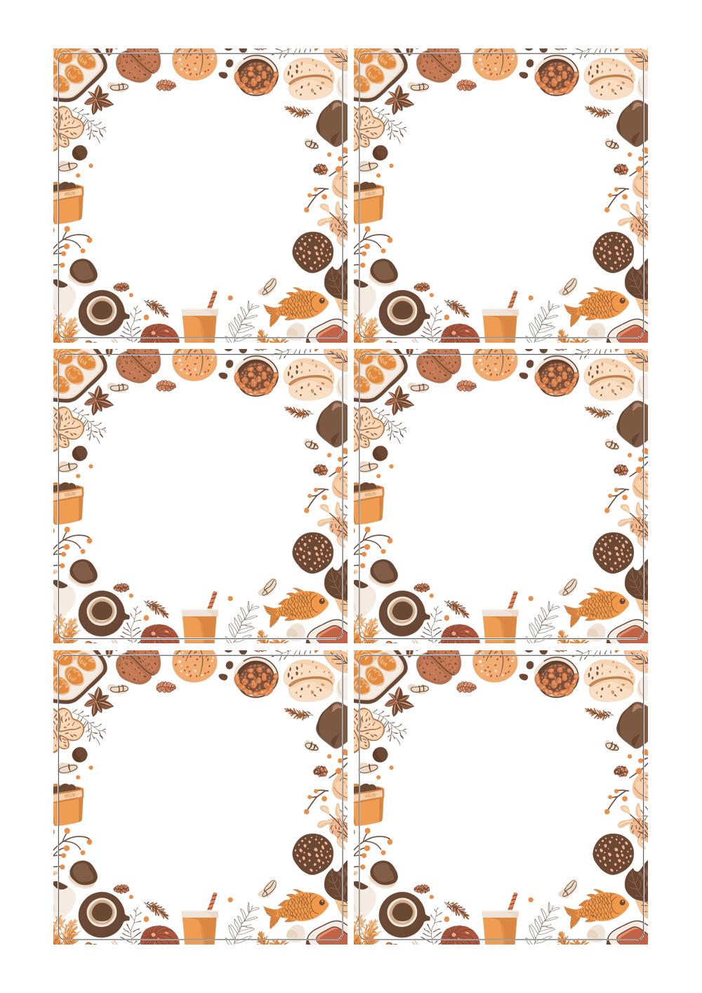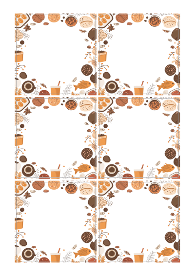 디자인된 A4 라벨지 출력용 라벨스티커, 규격코드: 823, 디자인코드: DA1515(달콤한 겨울빵 프레임), 85 x 85 (mm)