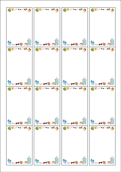 디자인된 A4 라벨지 출력용 라벨스티커, 규격코드: 945, 디자인코드: DA093(여행은 가기 전 날이 제일 즐거워), 45 x 68 (mm)