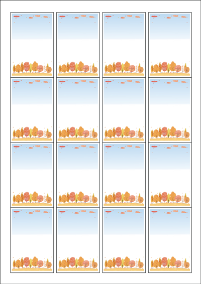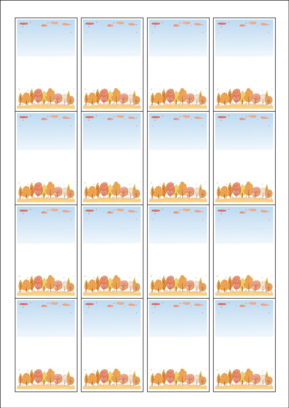 디자인된 A4 라벨지 출력용 라벨스티커, 규격코드: 945, 디자인코드: DA1016(가을날의 낙엽 공원), 45 x 68 (mm)