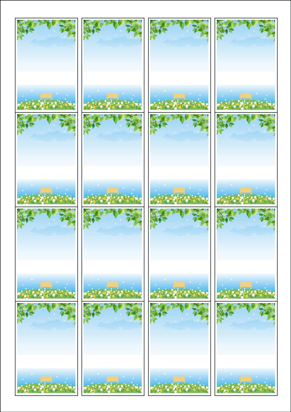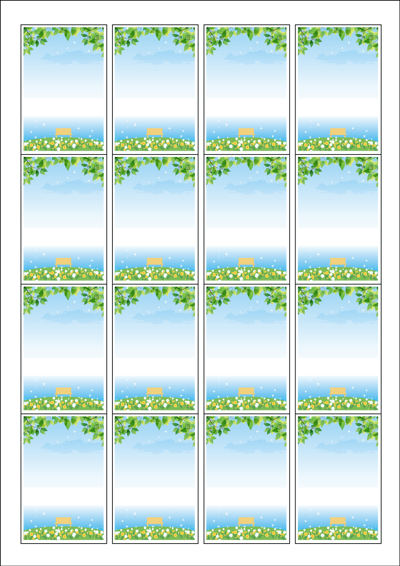 디자인된 A4 라벨지 출력용 라벨스티커, 규격코드: 945, 디자인코드: DA1033(휴식이 있는 민들레 언덕), 45 x 68 (mm)