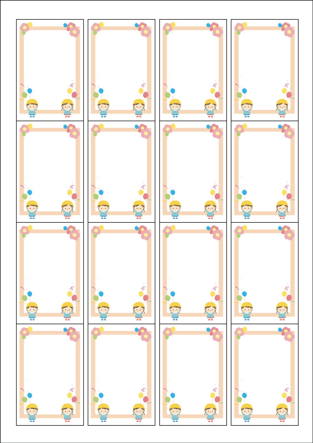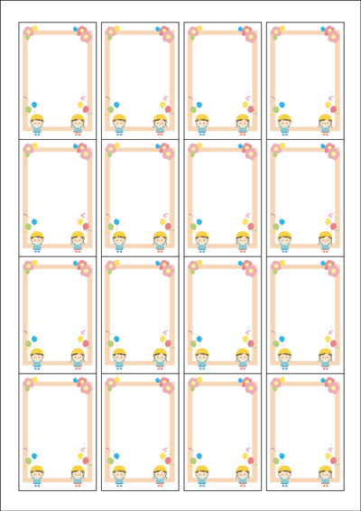 디자인된 A4 라벨지 출력용 라벨스티커, 규격코드: 945, 디자인코드: DA1261(반가워 애들아~~), 45 x 68 (mm)