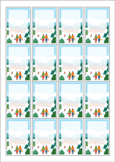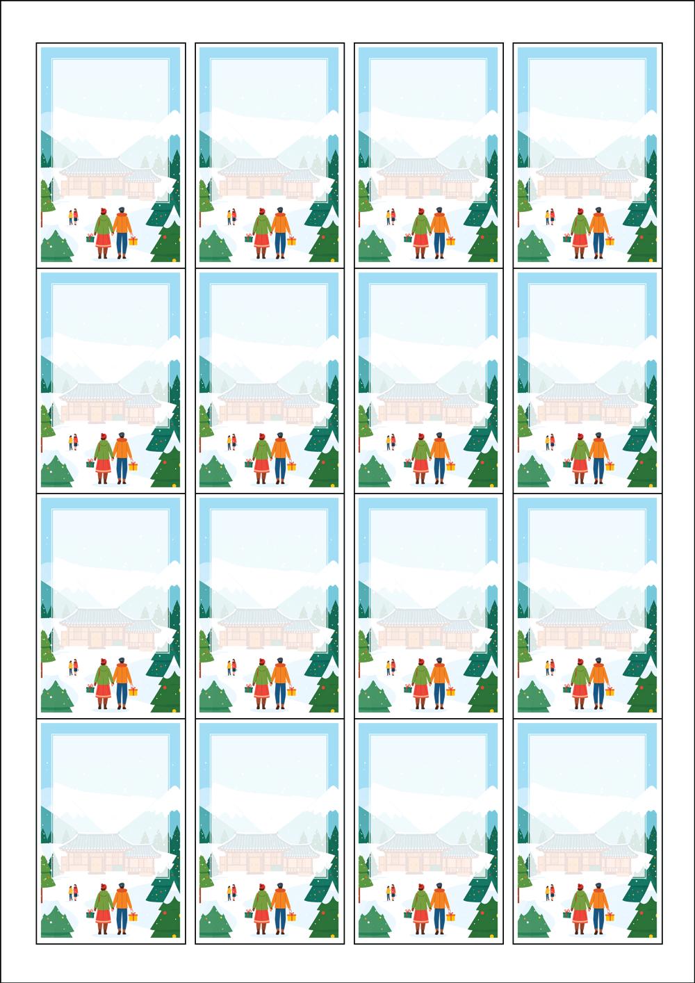 디자인된 A4 라벨지 출력용 라벨스티커, 규격코드: 945, 디자인코드: DA1569(설레는 설날의 아침), 45 x 68 (mm)