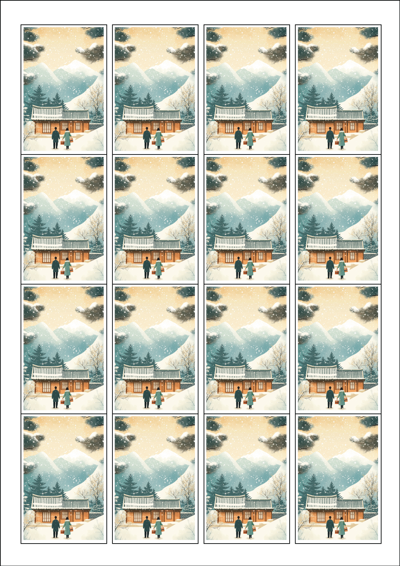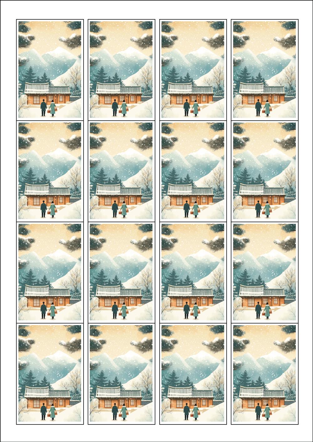 디자인된 A4 라벨지 출력용 라벨스티커, 규격코드: 945, 디자인코드: DA1575(설, 따뜻한 귀향), 45 x 68 (mm)