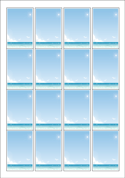 디자인된 A4 라벨지 출력용 라벨스티커, 규격코드: 945, 디자인코드: DA235(여름날 바닷가 추억의 사진), 45 x 68 (mm)