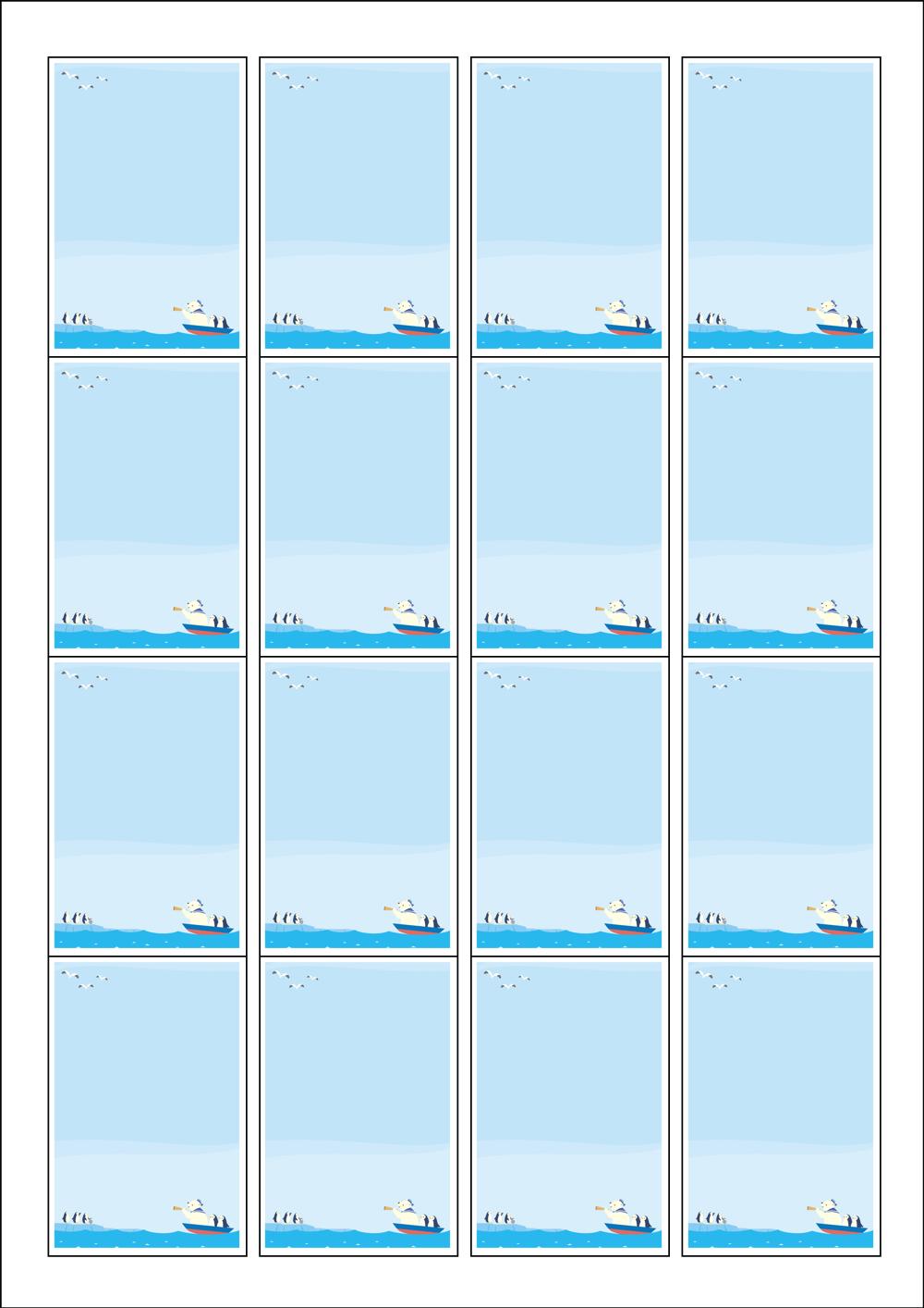 디자인된 A4 라벨지 출력용 라벨스티커, 규격코드: 945, 디자인코드: DA559(굿모닝 펭귄님들! 어서와요 곰아저씨~~), 45 x 68 (mm)
