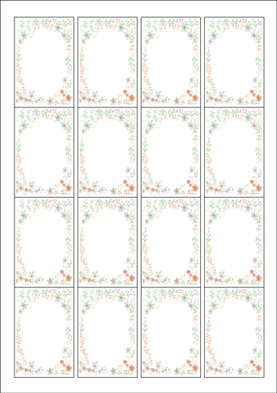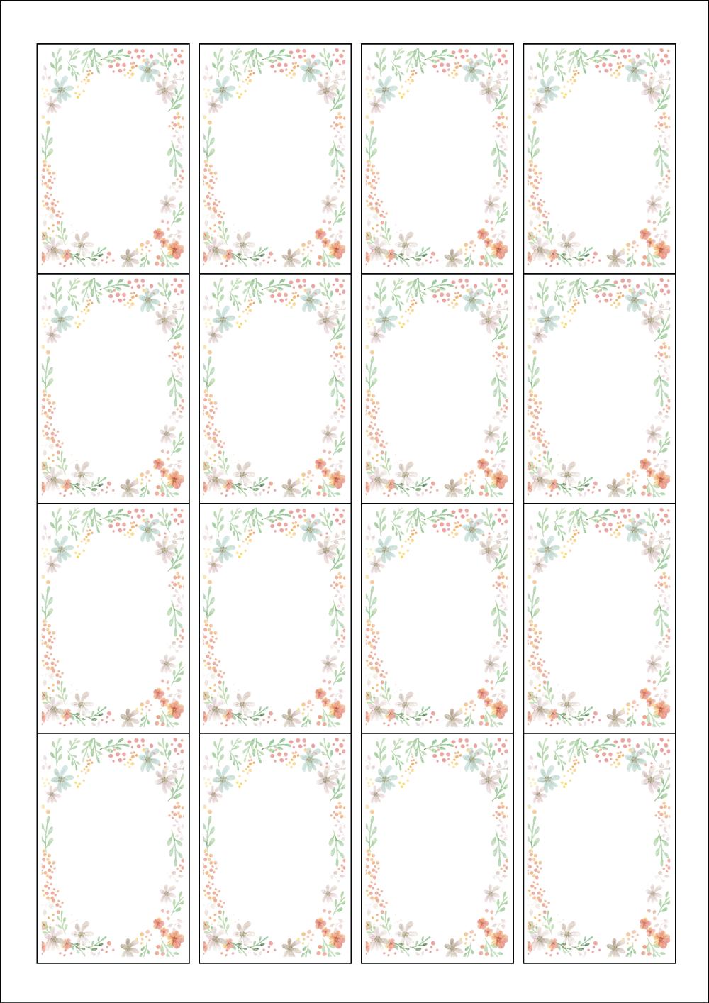 디자인된 A4 라벨지 출력용 라벨스티커, 규격코드: 945, 디자인코드: DA632(파스텔톤 꽃무늬 커튼), 45 x 68 (mm)