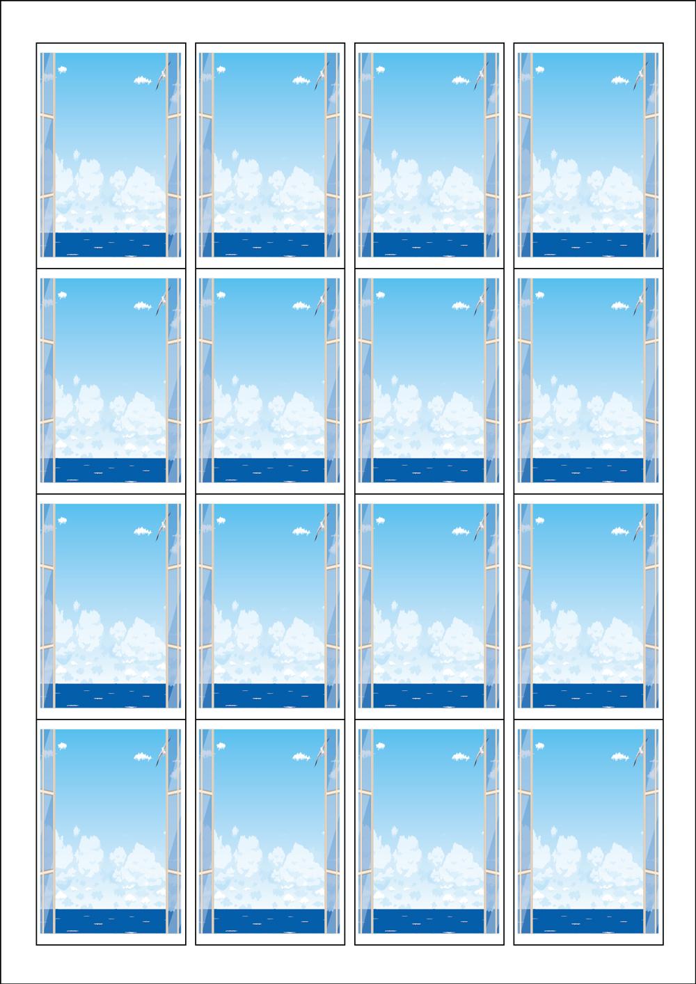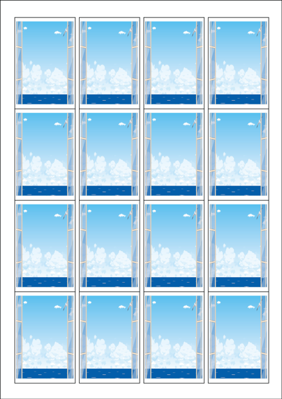 디자인된 A4 라벨지 출력용 라벨스티커, 규격코드: 945, 디자인코드: DA794(바닷가 풍경이 보이는 민박), 45 x 68 (mm)