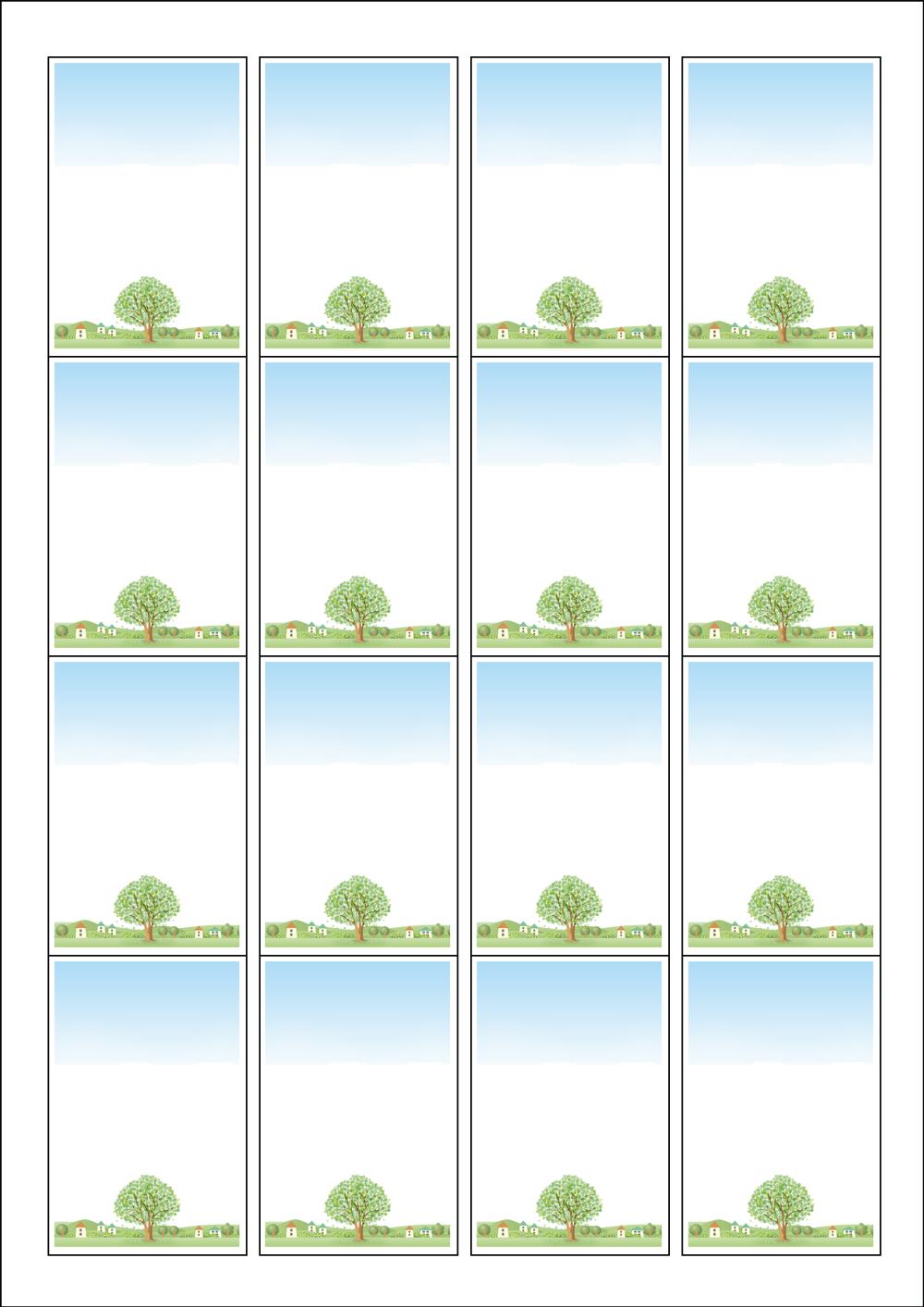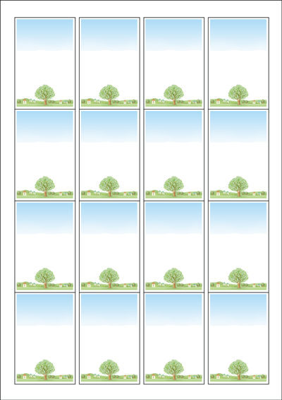 디자인된 A4 라벨지 출력용 라벨스티커, 규격코드: 945, 디자인코드: DA878(큰나무 마을), 45 x 68 (mm)