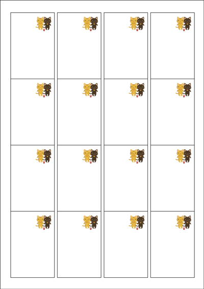 디자인된 A4 라벨지 출력용 라벨스티커, 규격코드: 945, 디자인코드: DT004(렛츠 고! 냐옹냐옹), 45 x 68 (mm)