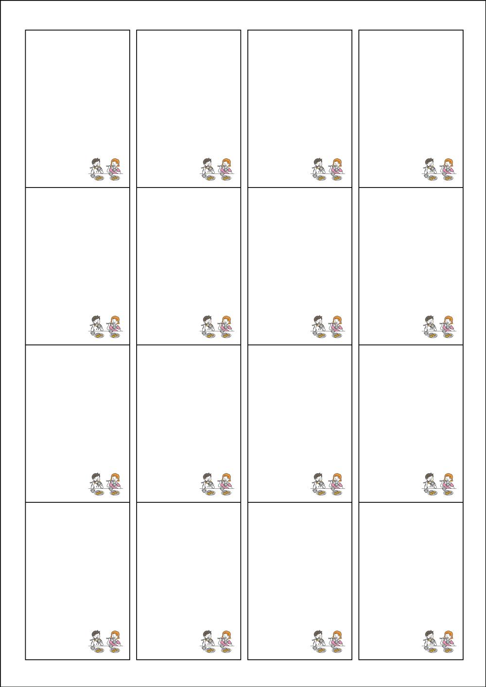 디자인된 A4 라벨지 출력용 라벨스티커, 규격코드: 945, 디자인코드: DV136(편식하지 않고 맛있는 식사), 45 x 68 (mm)