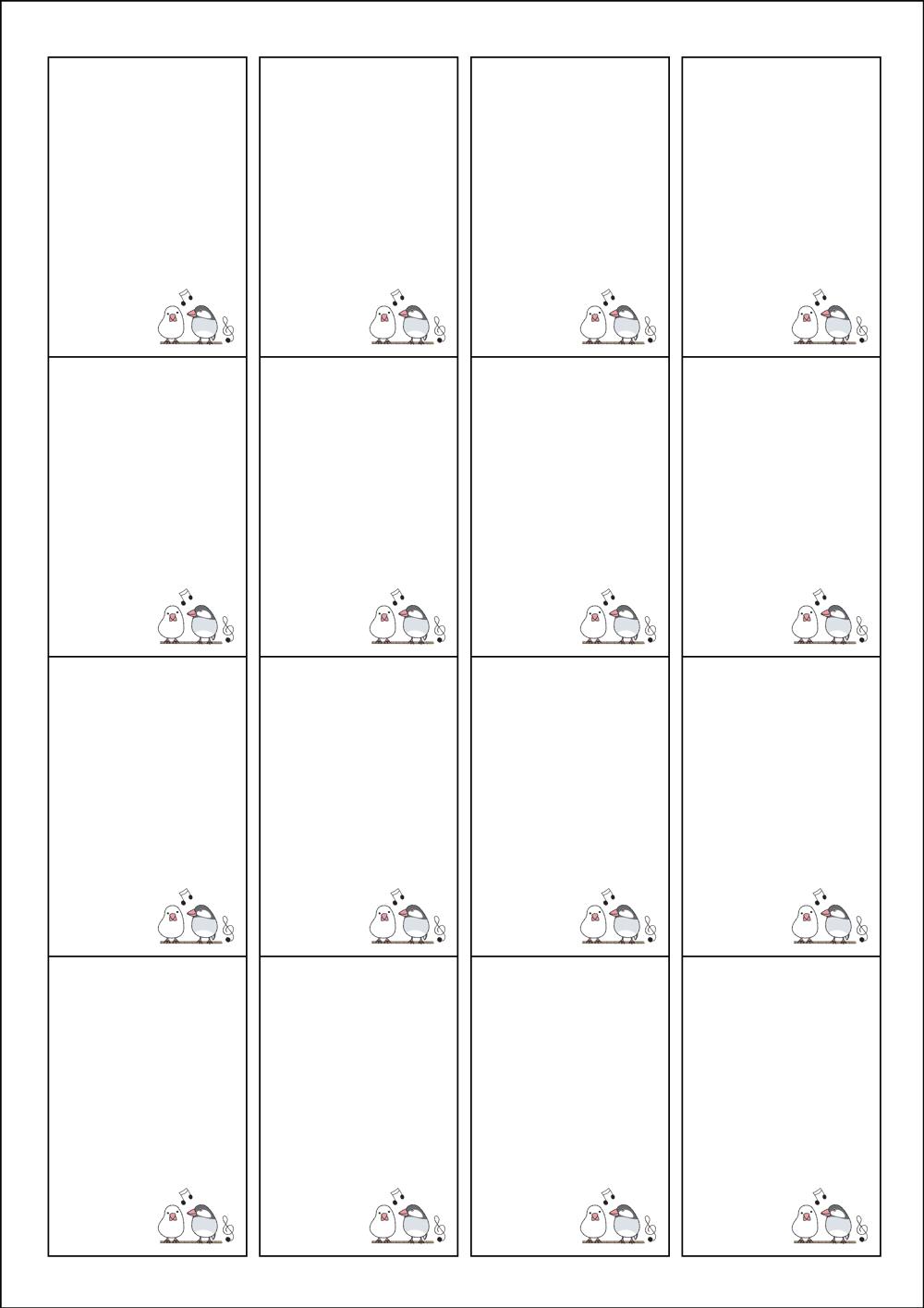 디자인된 A4 라벨지 출력용 라벨스티커, 규격코드: 945, 디자인코드: DV158(노래하는 새들), 45 x 68 (mm)