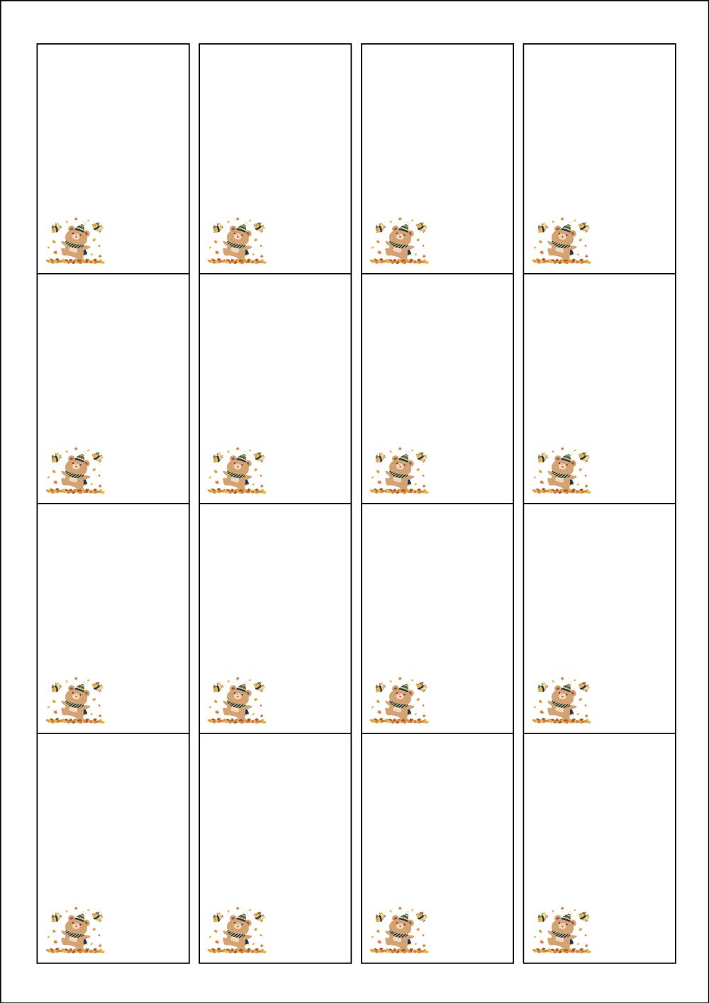 디자인된 A4 라벨지 출력용 라벨스티커, 규격코드: 945, 디자인코드: DX036(즐거운 곰 산책), 45 x 68 (mm)