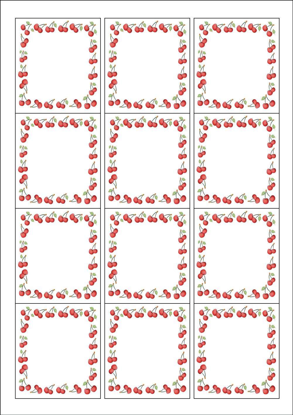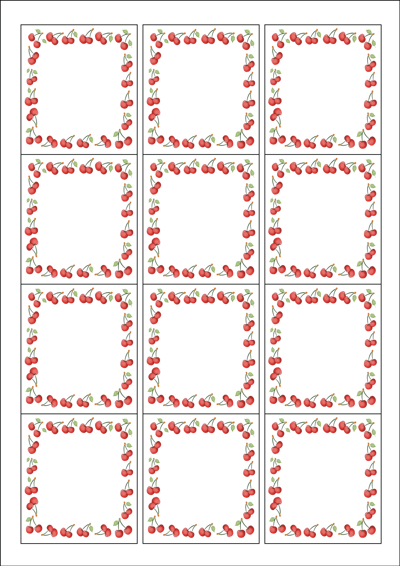 디자인된 A4 라벨지 출력용 라벨스티커, 규격코드: 961, 디자인코드: DA171(체리가 익어가는 계절), 61 x 68 (mm)