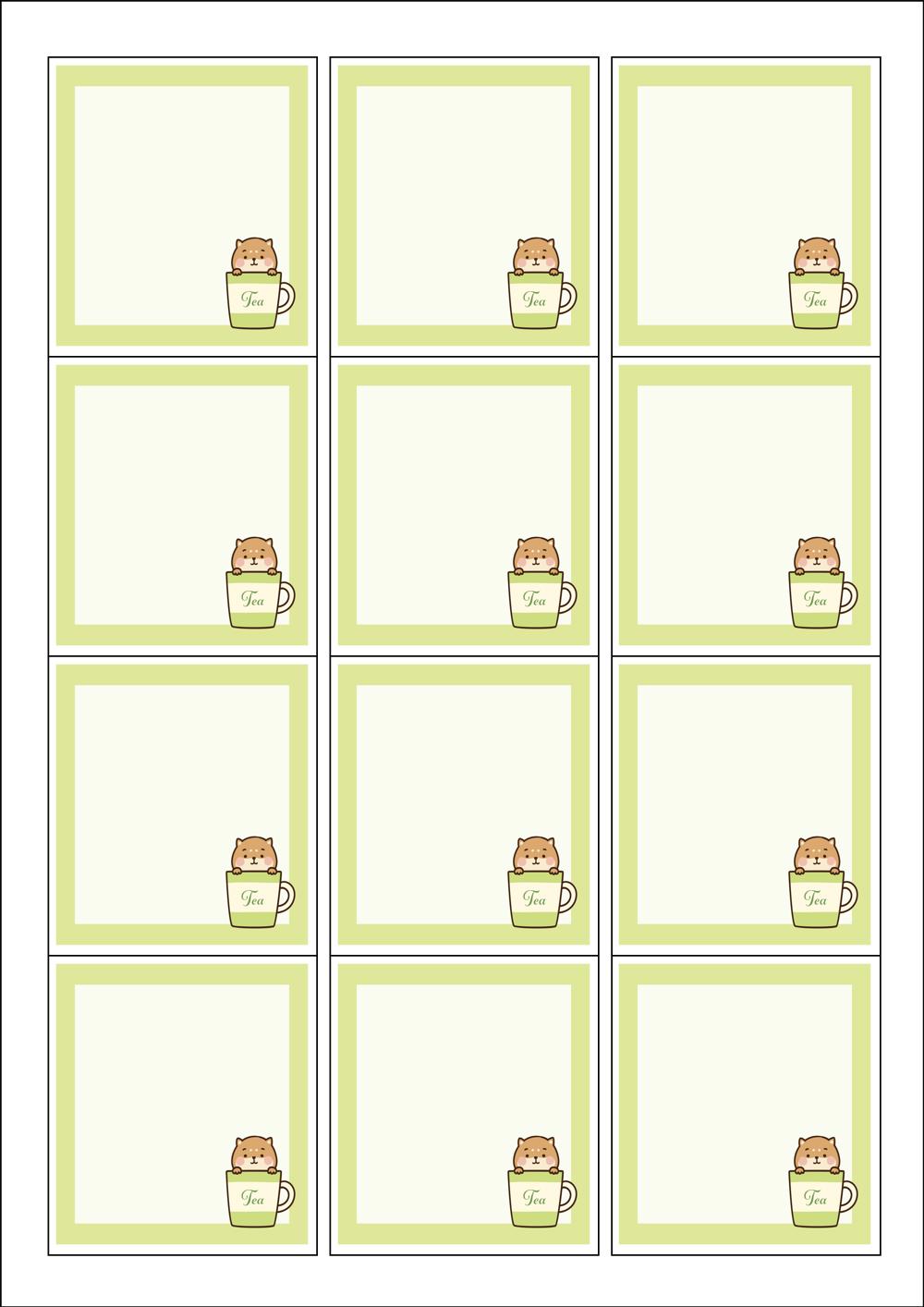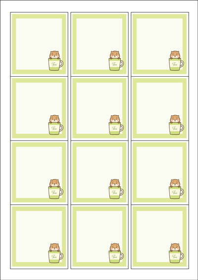 디자인된 A4 라벨지 출력용 라벨스티커, 규격코드: 961, 디자인코드: DA186(향긋한 차한잔 하세요), 61 x 68 (mm)