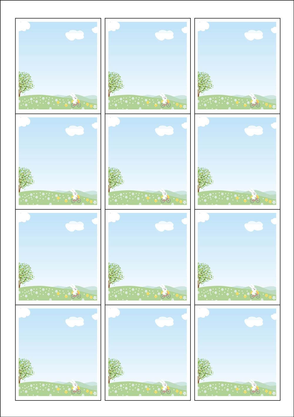 디자인된 A4 라벨지 출력용 라벨스티커, 규격코드: 961, 디자인코드: DA489(토끼의 자전거), 61 x 68 (mm)