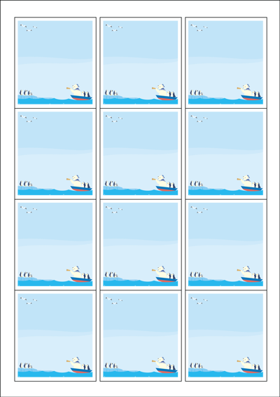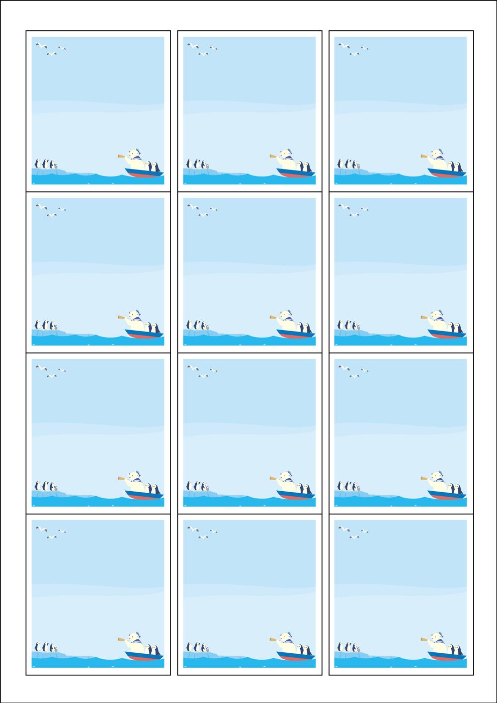 디자인된 A4 라벨지 출력용 라벨스티커, 규격코드: 961, 디자인코드: DA560(굿모닝 펭귄님들! 어서와요 곰아저씨~~), 61 x 68 (mm)
