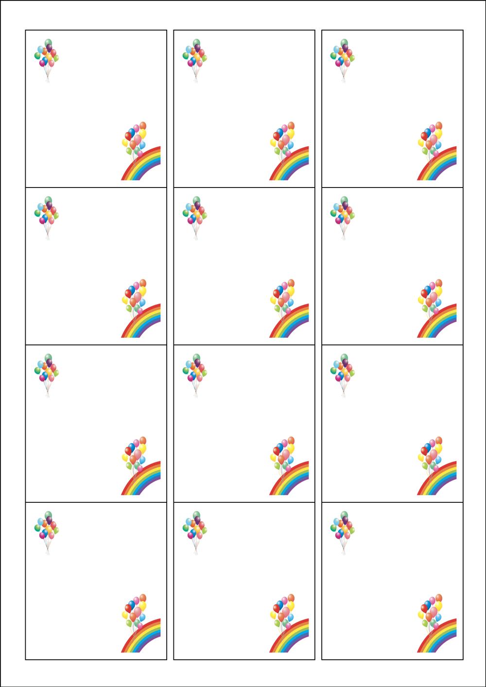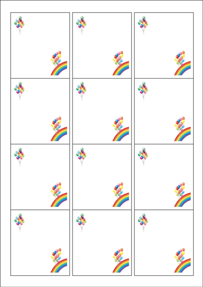 디자인된 A4 라벨지 출력용 라벨스티커, 규격코드: 961, 디자인코드: DA627(무재개 풍선(축하의 마음을 담아)), 61 x 68 (mm)