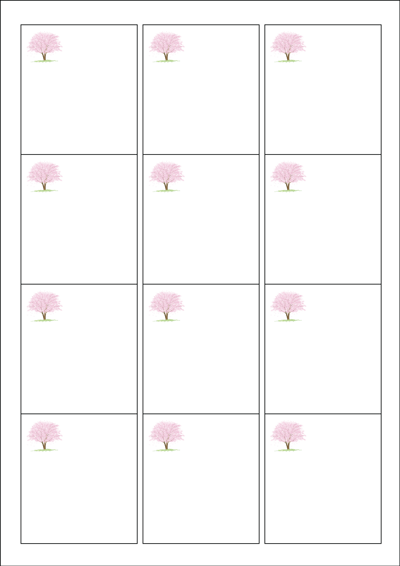 디자인된 A4 라벨지 출력용 라벨스티커, 규격코드: 961, 디자인코드: DR005(벚꽃이 피는 계절), 61 x 68 (mm)