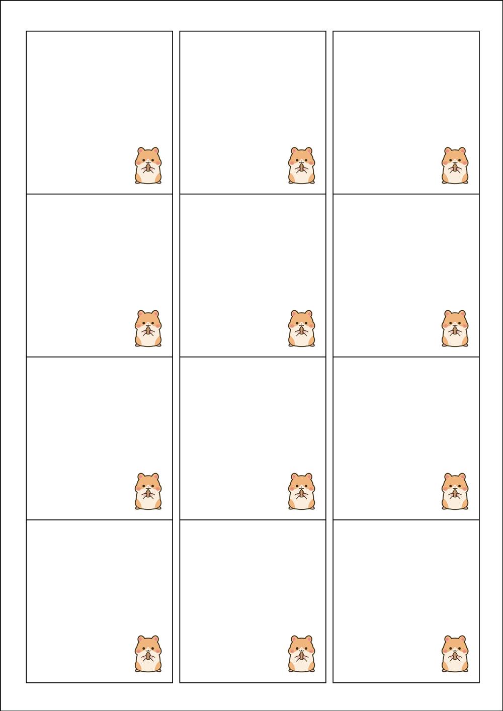 디자인된 A4 라벨지 출력용 라벨스티커, 규격코드: 961, 디자인코드: DV118(귀염둥이 햄스터 안녕~), 61 x 68 (mm)