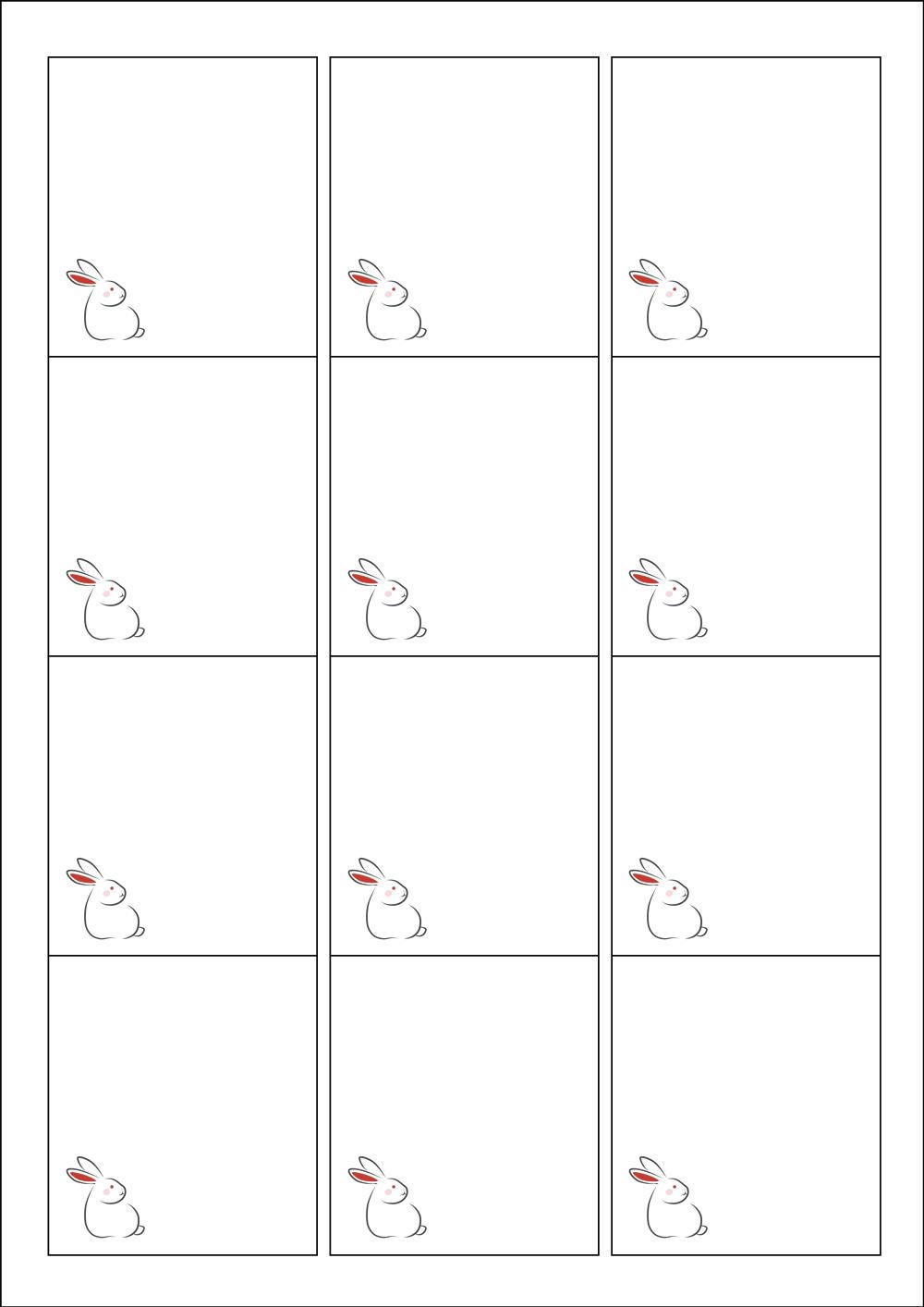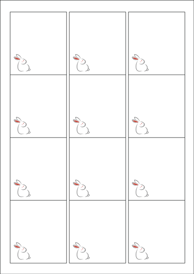 디자인된 A4 라벨지 출력용 라벨스티커, 규격코드: 961, 디자인코드: DX026(하이 ~ 토끼씨.), 61 x 68 (mm)