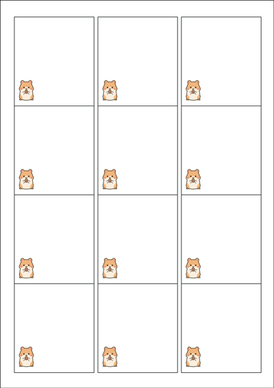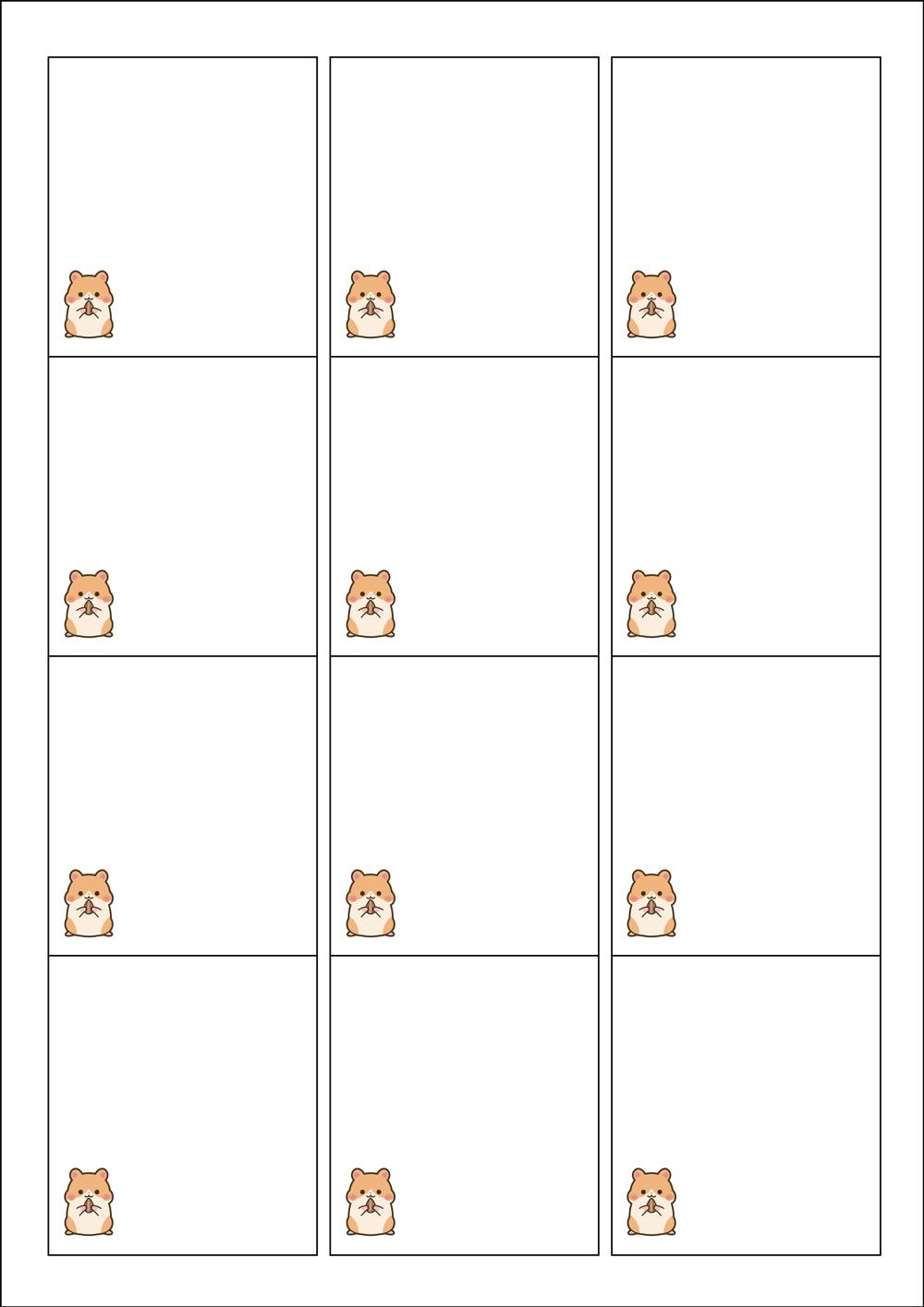 디자인된 A4 라벨지 출력용 라벨스티커, 규격코드: 961, 디자인코드: DX117(귀염둥이 햄스터 안녕~), 61 x 68 (mm)