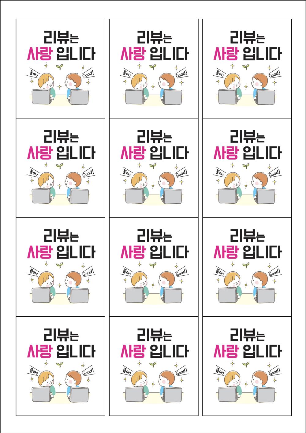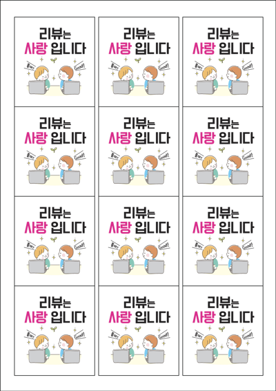디자인된 A4 라벨지 출력용 라벨스티커, 규격코드: 961, 디자인코드: FA034(리뷰는 사랑입니다), 61 x 68 (mm)