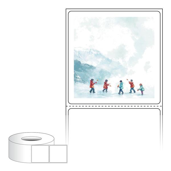 출력용 롤타입 스티커 디자인 라벨지, 규격코드: RL6061, 디자인코드: DA1522(추워도 즐거운 아이들의 겨울), 60 x 60.5 (mm) , 지관: 75mm