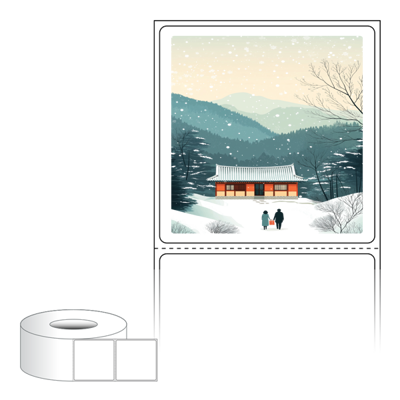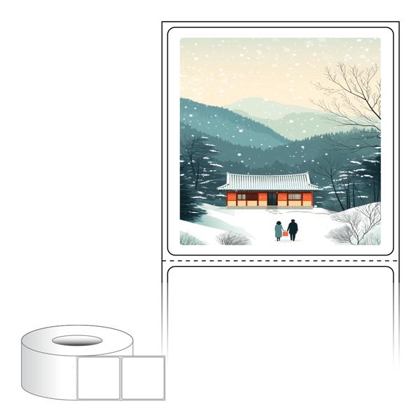 출력용 롤타입 스티커 디자인 라벨지, 규격코드: RL6061, 디자인코드: DA1577(귀향, 눈내리는 설날), 60 x 60.5 (mm) , 지관: 75mm