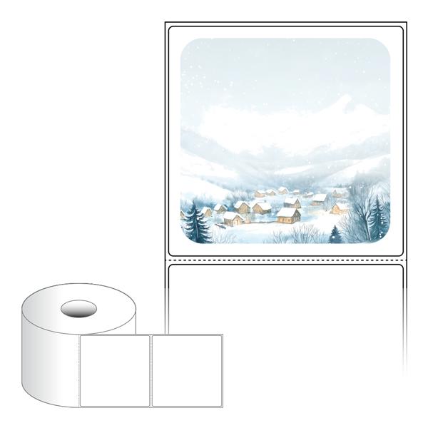 출력용 롤타입 스티커 디자인 라벨지, 규격코드: RS10098, 디자인코드: DA1541(고요한 한겨울의 풍경을 보내드려요), 100 x 98 (mm) , 지관: 40mm