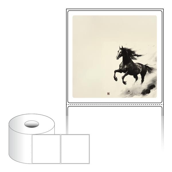 출력용 롤타입 스티커 디자인 라벨지, 규격코드: RS10098, 디자인코드: DA1570(함께 달리는 희망찬 새해), 100 x 98 (mm) , 지관: 40mm