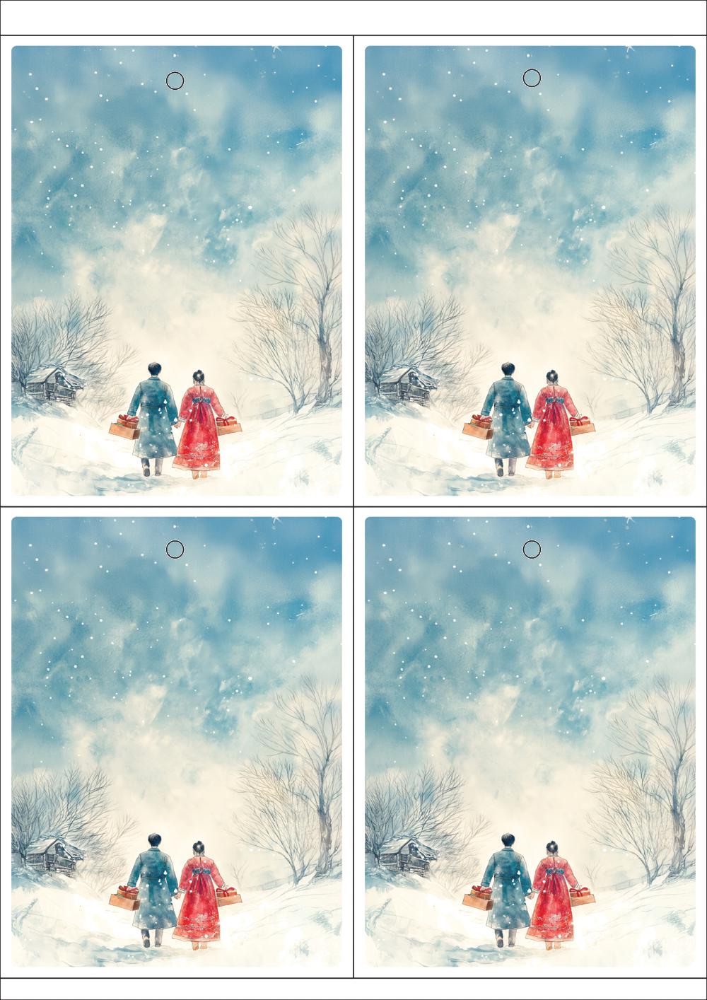 디자인된 A4 택 출력용 비점착 라벨, 규격코드: TLH0041, 디자인코드: DA1520(설레는 맘을 담은 설날), 105 x 140 (mm)