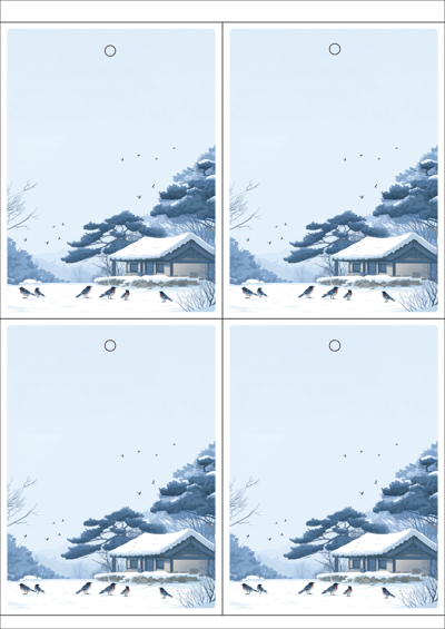 디자인된 A4 택 출력용 비점착 라벨, 규격코드: TLH0041, 디자인코드: DA1548(근하신년), 105 x 140 (mm)