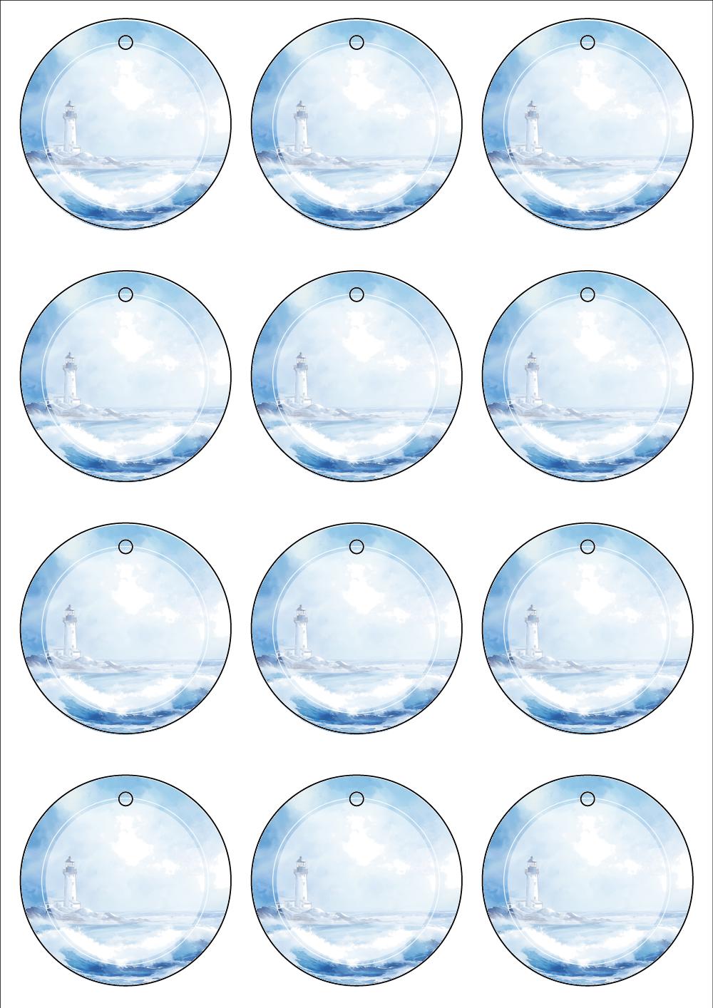 디자인된 A4 택 출력용 비점착 라벨, 규격코드: TLH0121, 디자인코드: DA1544(폭풍이 몰아치는 바닷가에서2), Φ62 (mm)