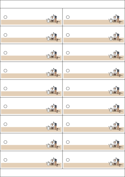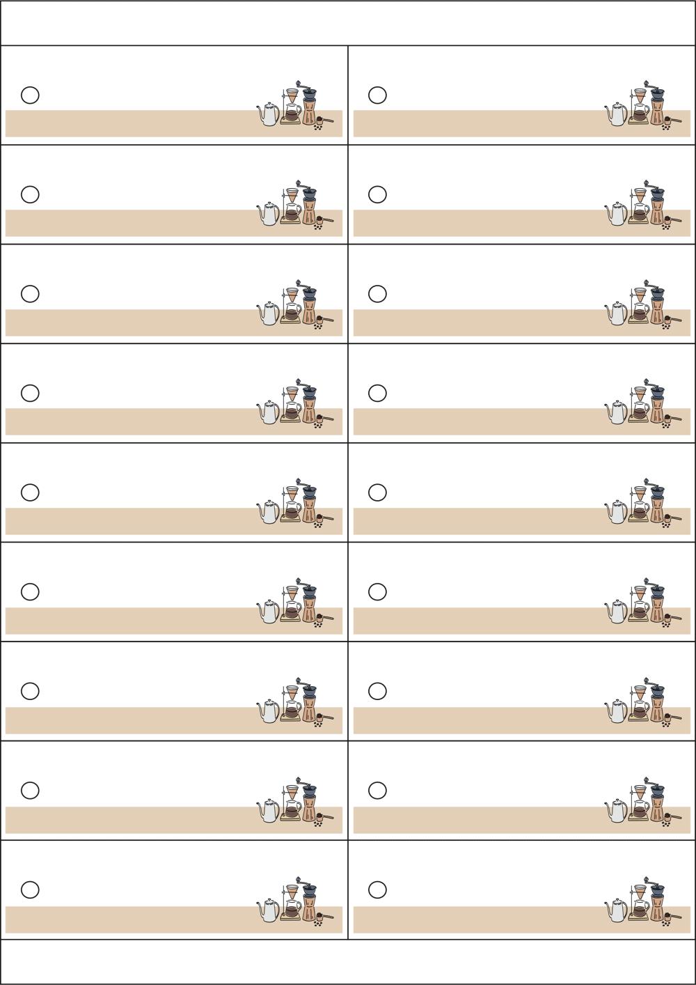 디자인된 A4 택 출력용 비점착 라벨, 규격코드: TLH0181, 디자인코드: DA1675(커피향이 좋은 드립카페), 105 x 30 (mm)
