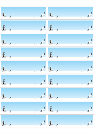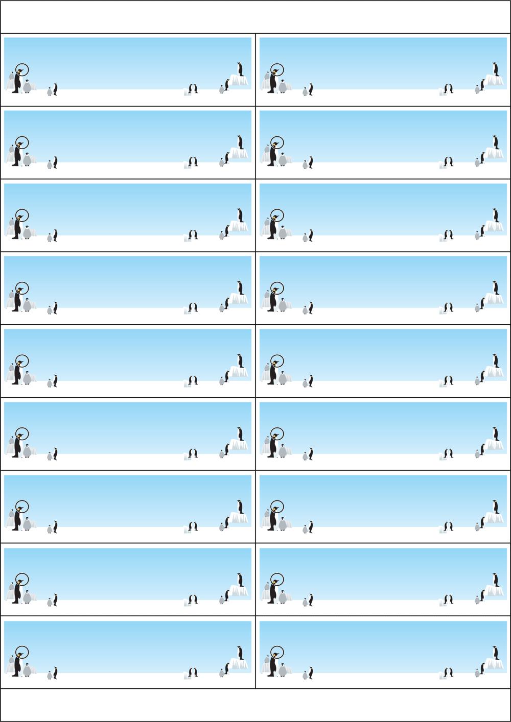 디자인된 A4 택 출력용 비점착 라벨, 규격코드: TLH0181, 디자인코드: DA1817(펭귄님들의 하루), 105 x 30 (mm)