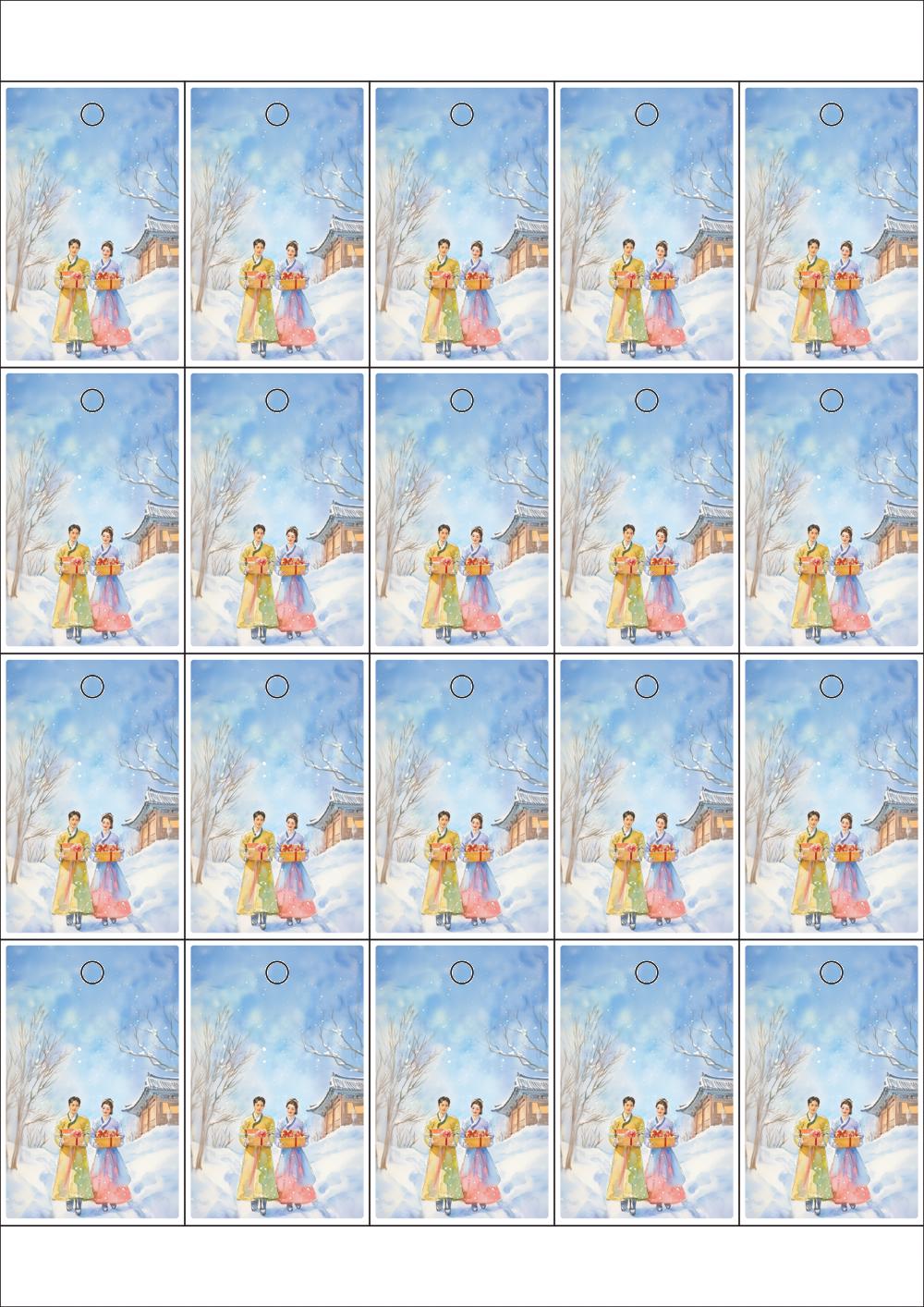 디자인된 A4 택 출력용 비점착 라벨, 규격코드: TLH0203, 디자인코드: DA1519(감사의 마음을 담은 선물을 드려요), 42 x 65 (mm)