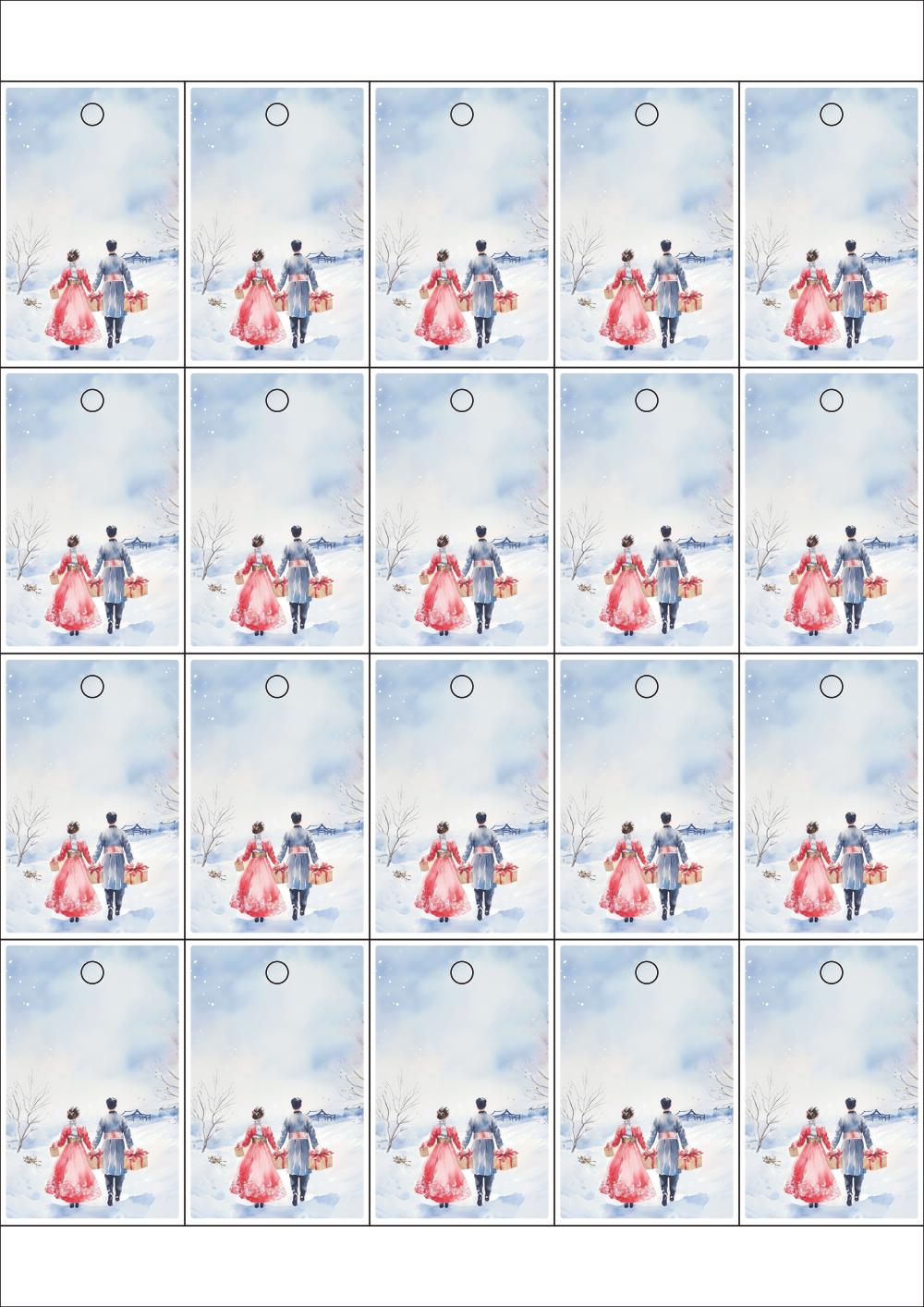 디자인된 A4 택 출력용 비점착 라벨, 규격코드: TLH0203, 디자인코드: DA1521(새해 복 많이 받으세요), 42 x 65 (mm)
