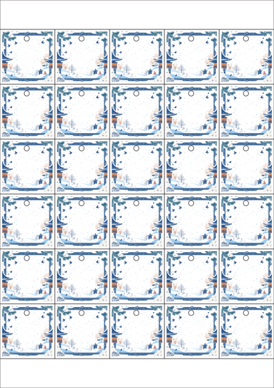 디자인된 A4 택 출력용 비점착 라벨, 규격코드: TLH0301, 디자인코드: DA1514(겨울 프레임, 설날), 42 x 42 (mm)