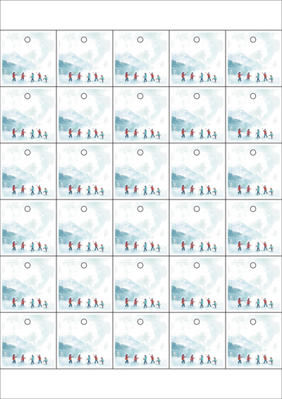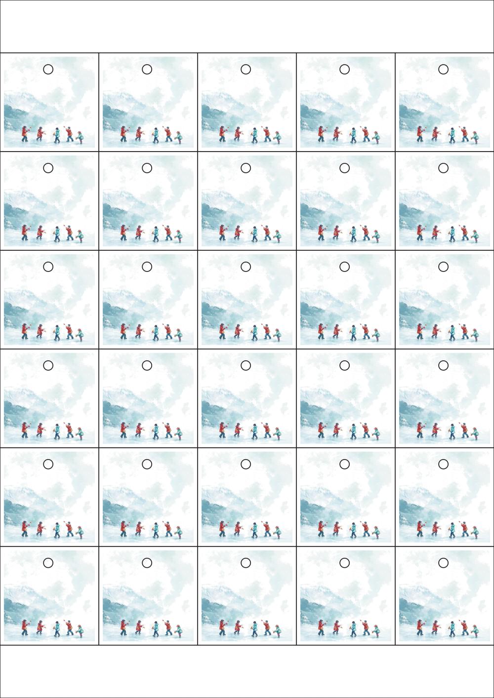 디자인된 A4 택 출력용 비점착 라벨, 규격코드: TLH0301, 디자인코드: DA1522(추워도 즐거운 아이들의 겨울), 42 x 42 (mm)