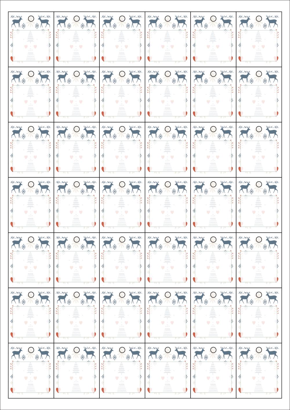 디자인된 A4 택 출력용 비점착 라벨, 규격코드: TLH0421, 디자인코드: DA1527(겨울 산장에서 메세지), 33 x 40 (mm)