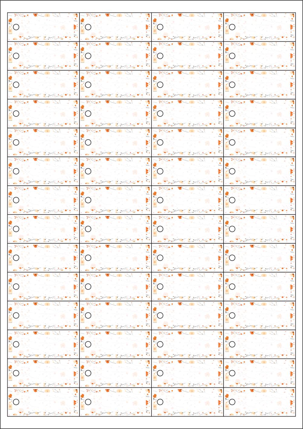 디자인된 A4 택 출력용 비점착 라벨, 규격코드: TLH0561, 디자인코드: DA1553(꽃잎 포장지), 50 x 20 (mm)