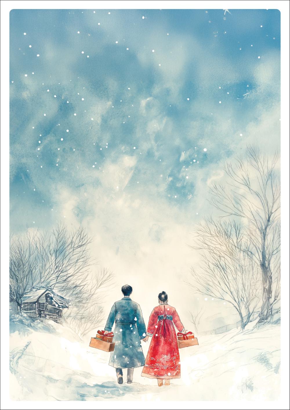 디자인된 A4 택 출력용 비점착 라벨, 규격코드: TLS0011, 디자인코드: DA1520(설레는 맘을 담은 설날), 210 x 297 (mm)
