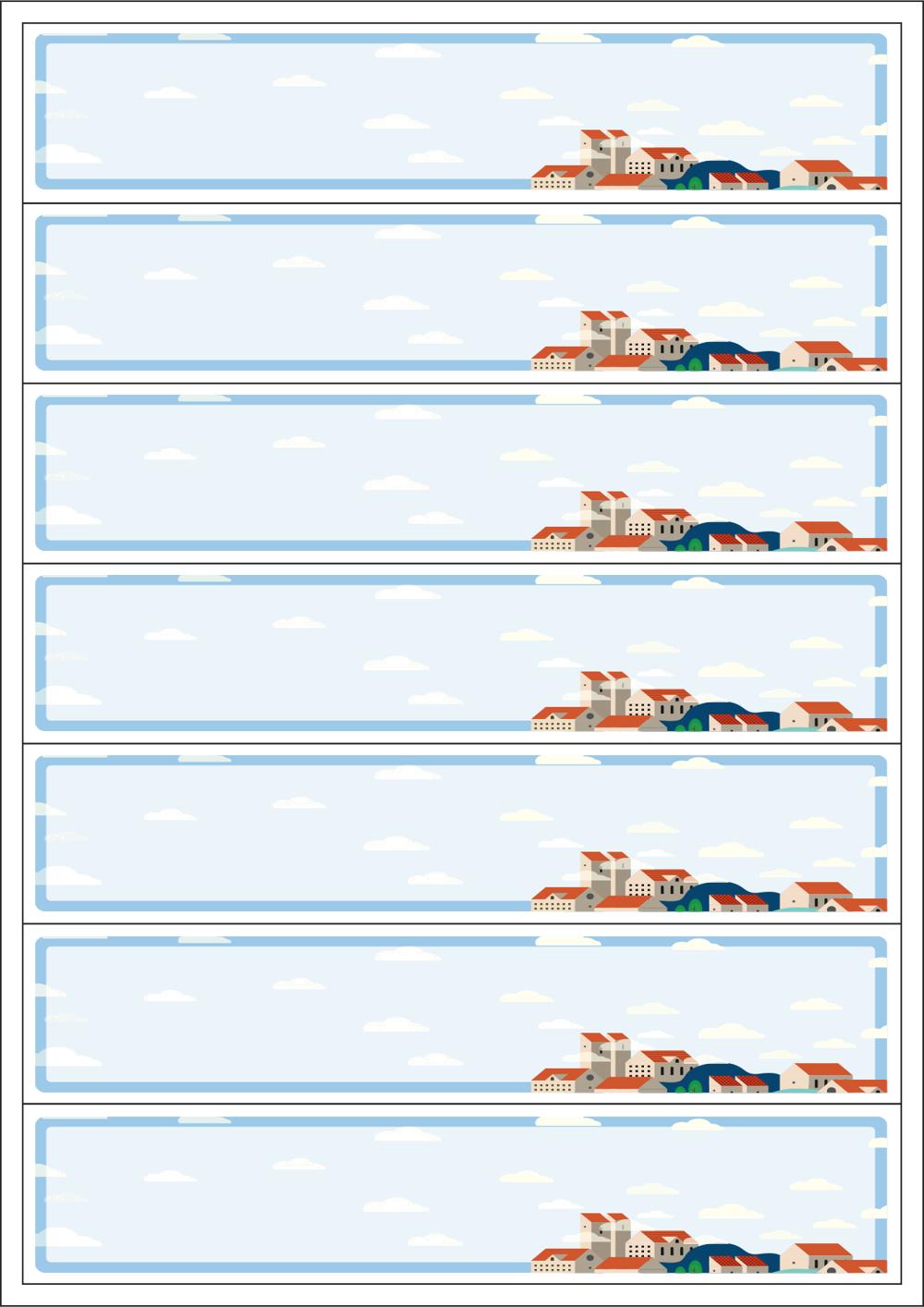 디자인된 A4 택 출력용 비점착 라벨, 규격코드: TLS0071, 디자인코드: DA1608(평온한 맑은 하루의 일상), 200 x 41 (mm)