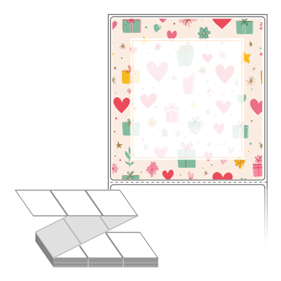 롤라벨보다 편리한 제트라벨, 규격코드: ZL100107, 디자인코드: DA1393(선물 하트 포장지), 100 x 107.067 (mm)