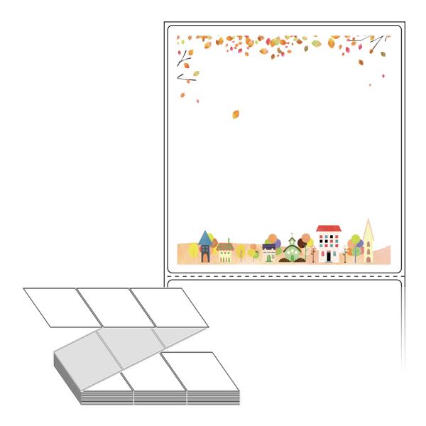 롤라벨보다 편리한 제트라벨, 규격코드: ZL100107, 디자인코드: DA320(낙엽과 함께한 가을날 일상), 100 x 107.067 (mm)