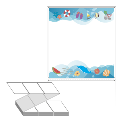 롤라벨보다 편리한 제트라벨, 규격코드: ZL100107, 디자인코드: DA498(한여름 수중탐험), 100 x 107.067 (mm)